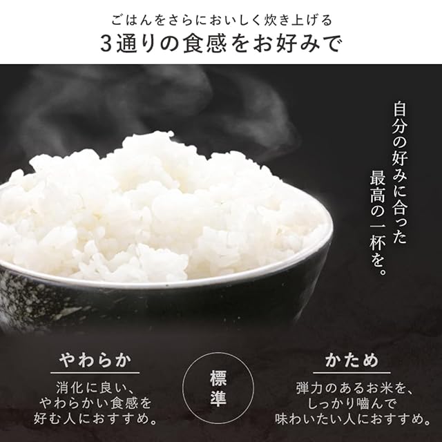 食感を選択:【やわらか】やわらかい食感を好む人にオススメ【ふつう】一般的なごはん【かため】弾力のあるお米を味わいたい人にオススメ