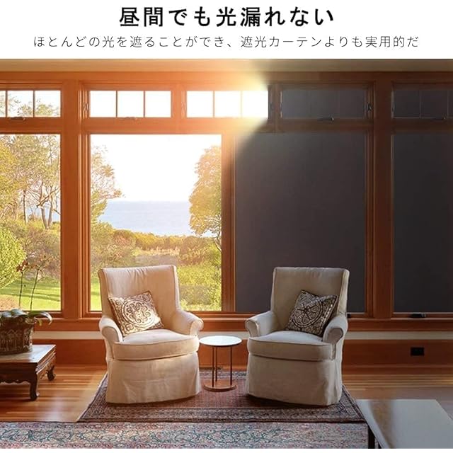 遮光・目隠し・UVカット:昼夜を問わず、外からはほとんどみえない!朝、光漏れが減って優しくなります。夜、カーテンを開いても外から光が通さずぐっすりと眠れます。UVA 84%・UVB99% 以上カットし、色褪せ対策として内装をきちんと守ります。