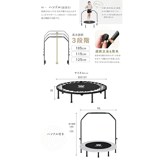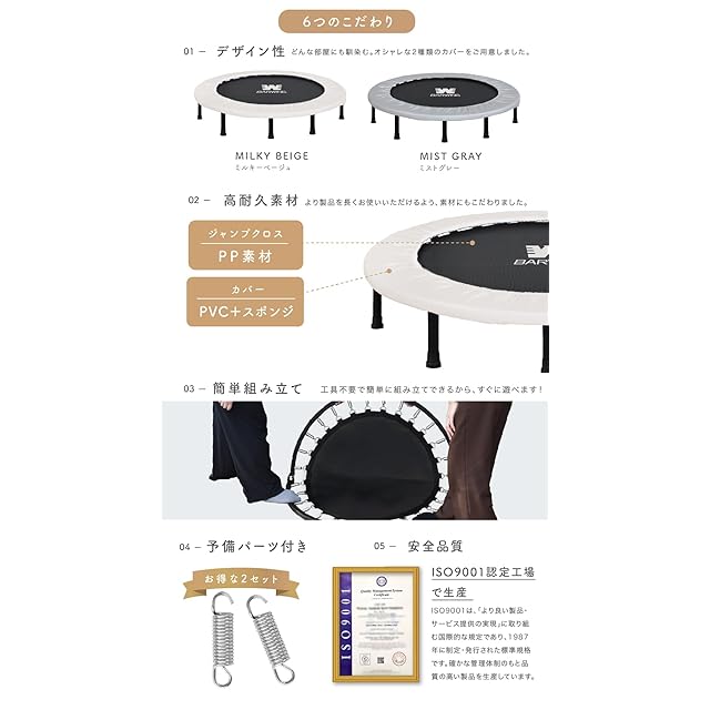BARWING(バーウィング) 新モデル登場 トランポリン 8本脚 静音 耐荷重150kg 子供用 大人用 ダイエット クッション トランポリン 折りたたみ カバー (6. BIGモデル ミルキーベージュ)