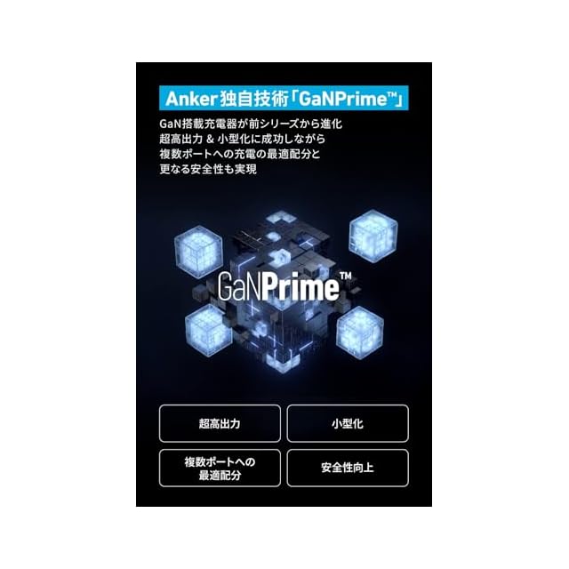 最大65Wの高出力:単ポートでは最大65W出力により、ノートPCやスマートフォンまでこれ一つで急速充電が可能です。<br>一般的な5W出力の充電器に比べ、iPhoneへ最大3倍速く充電できます (※iPhone 14を0%から50%まで充電した場合での比較。充電時間はAnker調べ) 。