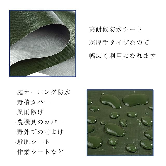 SUNHOO 防水シート 厚手 耐水 UVシート 台風・ゲリラ豪雨対策 水害対策 カバー 庭 屋根 保護 (5.8m×7.8m, グリーン)