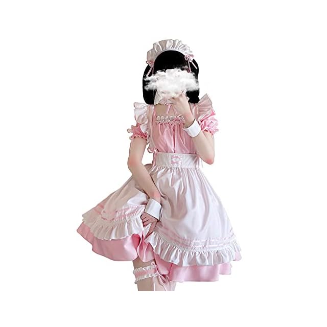 [ANONIE] メイド服 コスプレ仮装 初心者 セット かわいい コスチューム ホワイト+ブラック 豪華セット (pink, 3XL)