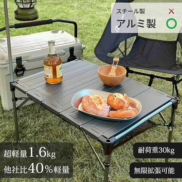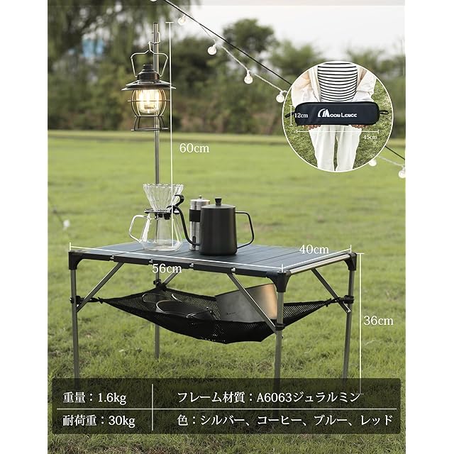 Moon Lence キャンプ テーブル アルミ ロールテーブル アウトドア ハイキング BBQ 折りたたみ式 コンパクト 超軽量…