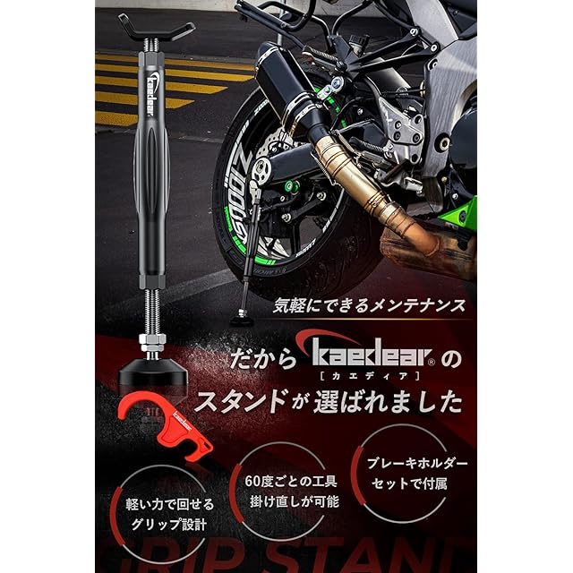 Kaedear(カエディア) バイク メンテナンススタンド リア バイクスタンド バイク用サイドスタンド バイク用センタースタンド チェーン 簡易 ジャッキ スタンド グリップスタンド ターンバックル ジャッキアップ C 清掃 L 給油 ブレーキホルダー付き KDR-ST1-BK (ブラック)