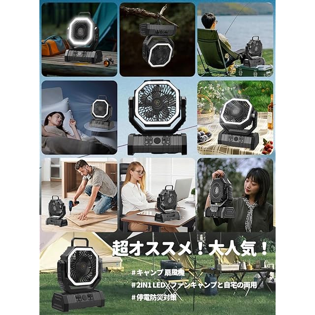 【DCモーター搭载で静音・省工ネを実現】キャンプ 扇風機は三相DCブラシレスモーターにより、コンパクトサイズでありながらも効率よく風を送り、想像を超えた大風量!消費電力はわずか約15W!ACモ-タ-では実現できなかった、圧倒的な省工ネ性能です。人と環境にやさしい充電式扇風機!車中泊キャンプ扇風機は静音設計でぐっすり眠れる静かで心地がよく、心も身体もすっきりリフレッシュ。