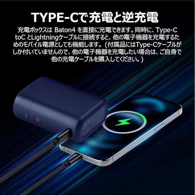 {防水防塵耐衝撃性} Baton4 本体の防水規格はIPX8レベルに達成し、一時的に水没しても内部に滲むのを防ぐことを確保できます。高さ1.5メートルのところから落ちても壊れないし、耐塵、防滴、耐久性に優れています。充電ケースには適用されませんのでご注意ください