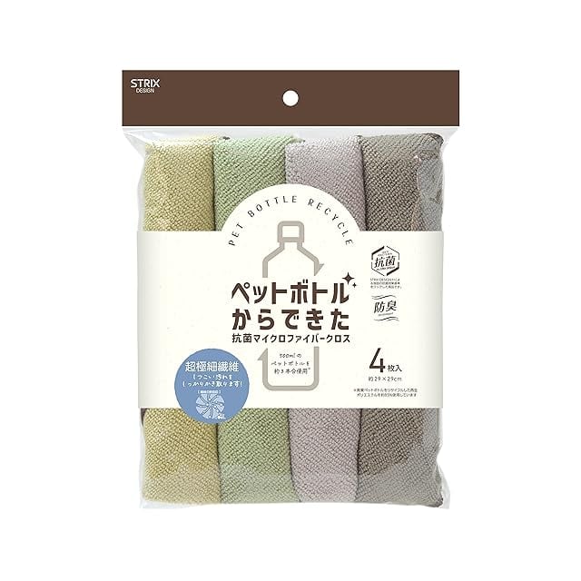 ストリックスデザイン ペットボトルからできた抗菌 マイクロファイバークロス 4枚入 約29×29cm 超極細繊維 再生ポリエステル配合 吸水速乾 SB-103