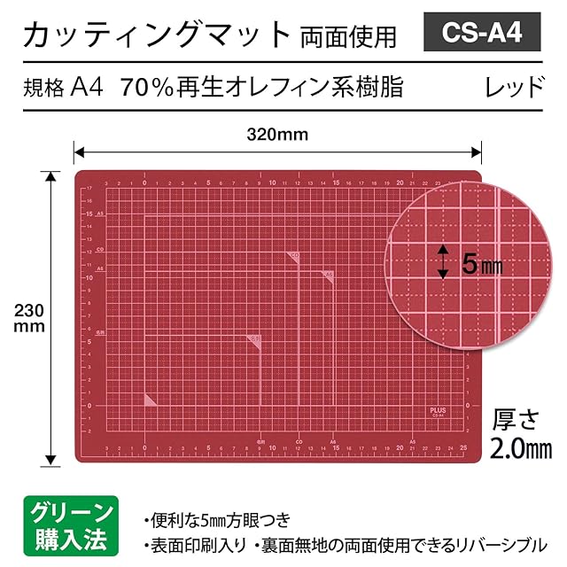 PLUS(プラス) プラス カッターマット 両面 A4 230×320mm レッド 48-572