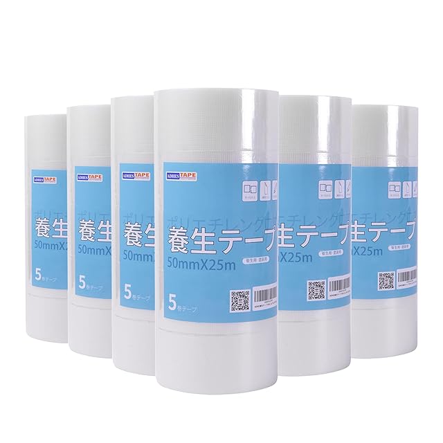 養生テープの採用基材:ポリエチレンクロス、粘着剤:アクリル油、テープの厚さ:0.16mm、粘着力:1.7N/cm(弱粘着)、引っ張強さ:30N/cm、伸び率:10%