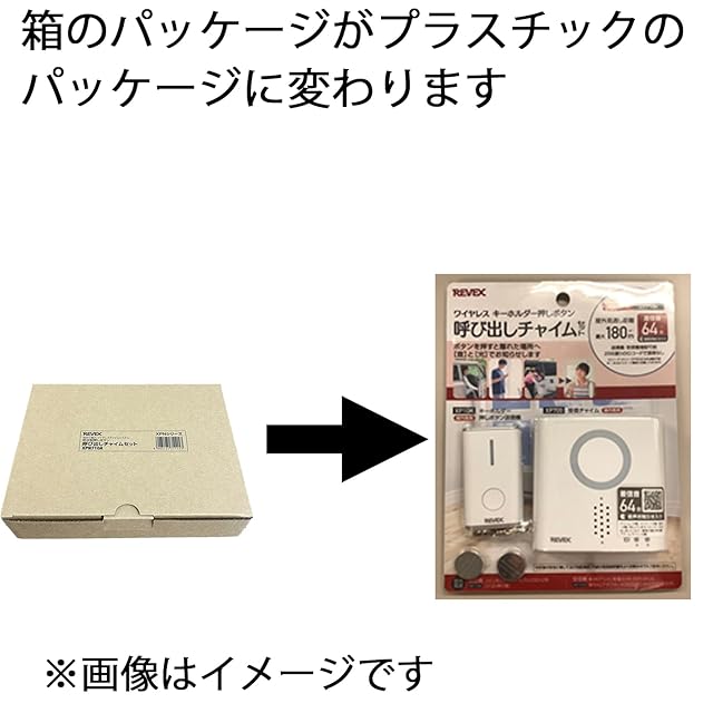 サイズ・重量(電池を含まない)(約):送信機/5.6×8.7×2.8cm・センサー部/径3.8×2.1cm・69g 、受信チャイム/9×9.1×3.2cm・85g
