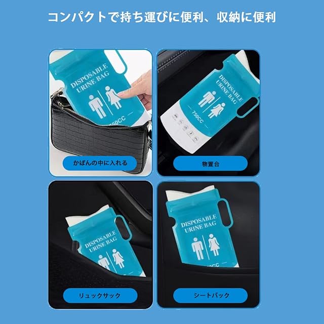 【様々な人々に適用】使い捨て携帯トイレの容量が大きくて、750mlがあります。男女を問わず、年齢を問わず、誰でも簡単に使用できます。特別な人体デザインの開口部防漏パッドが付いており、身体にぴったりフィットし、立っている場合でも座っている場合でも使用が簡単で、不快な事故を心配はありません。屋外での活動中や室内で、緊急の場合でも日常の使用でも、私たちの製品は信頼性のある衛生的な解決策を提供し、常に満足のいく使用体験を提供します。