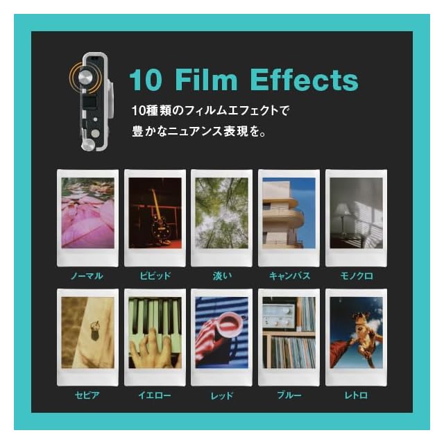 ✅10種類のレンズ効果と10種類のフィルム効果の掛け合わせにより100通りの写真表現を楽しめる。