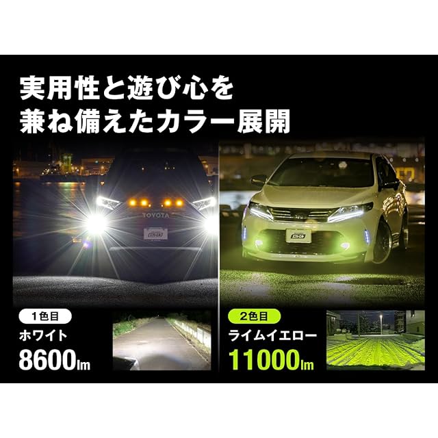 【気分で選べる3つの光】純正スイッチのON/OFFだけで、実用的な「ホワイト」、悪天候に強い独自開発色「ライムイエロー」、そして個性を際立たせる「選べる3色目(イエロー/フロスティブルー/アンバー)」に簡単切り替え。シーンや気分に合わせて、あなたの愛車をドレスアップします。