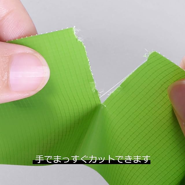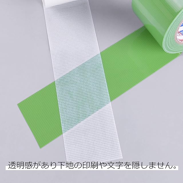 養生テープの採用基材:ポリエチレンクロス、粘着剤:アクリル油、テープの厚さ:0.16mm、粘着力:2.2N/cm(弱粘着)、引っ張強さ:30N/cm、伸び率:10%