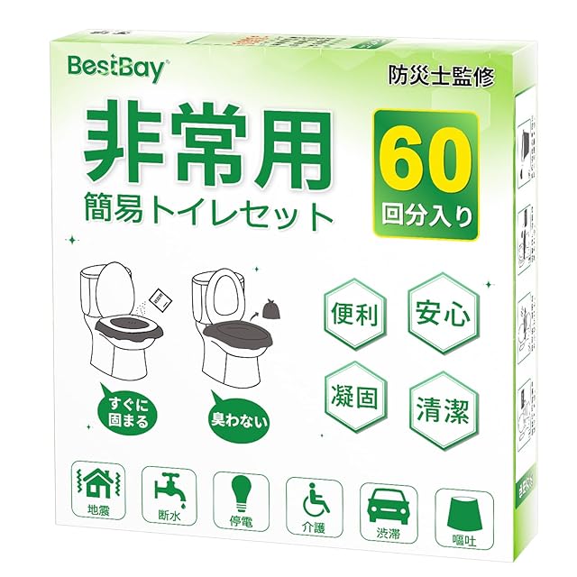 簡易トイレ【防災士監修】BESTBAY 非常用トイレ 60回分 15年保存 防災グッズ 携帯トイレ 防臭袋 汚物袋 凝固剤 防災トイレ 長期保管 手袋付き 持ち運び易い コンパクト 地震対策 断水対策 災害対策 (60回分)