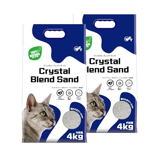 【OFT】 クリスタルブレンドサンド 4kg×2個セット 獣医師推奨 白い猫砂 体調管理 鉱物系 ベントナイト シリカゲル ゼオライト 活性炭 無着色 無香料 少ない粉塵 オーエフティー