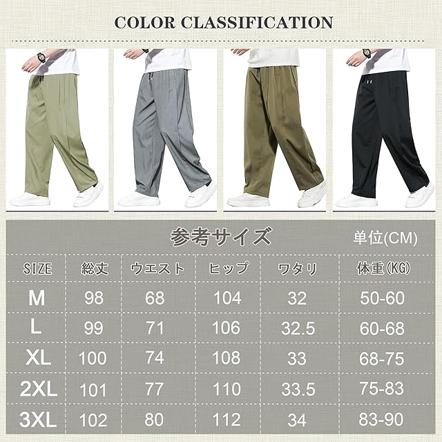 [HMT] ワイドパンツ メンズ ズボン 夏用 ストレートパンツ 冷感 夏服 ャンブレー ずぼん 大きいサイズ ボトムス 上品 ピンタック ロング丈 イージーぱんつ ゆったり 春 夏 秋 (JP, アルファベット, 3XL, #10:グリーン)