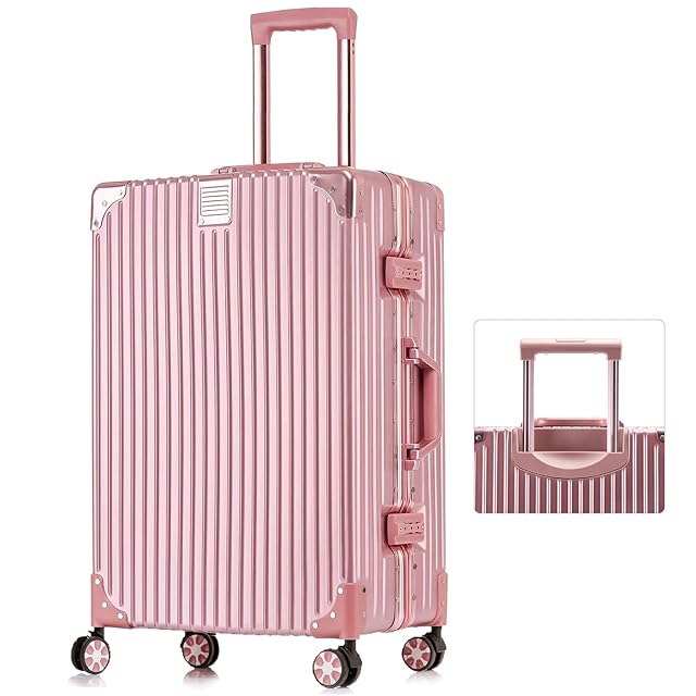 [Airmood] スーツケース キャリーケース 機内持ち込み可 アルミフレーム 超軽量 TSAロック付 大型 静音 ダブルキャスター 旅行 大容量 耐衝撃 ビジネス 出張 保護カバー付き 物掛けフック (Mサイズ 24インチ 4泊5日 ピンク 60L)