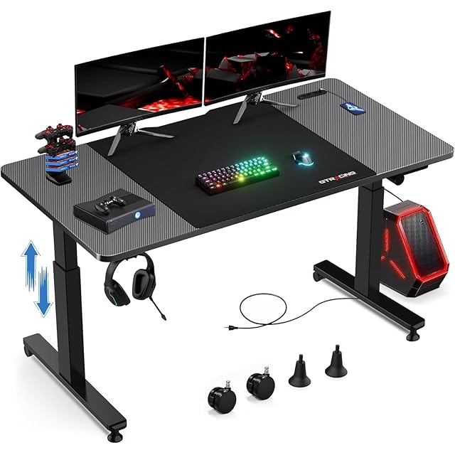 GTRacing ゲーミングデスク ローデスク ロータイプ 手動式昇降式デスク ハンドル式 パソコンデスク 静音 安定昇降 スムーズに回り コンセント付き キャスター デスクマット フック ケーブルマネージャー付き 高さ51-78cm×幅110CM×奥行×55CM 調節可能 カーボン調 GT113-CFBlack