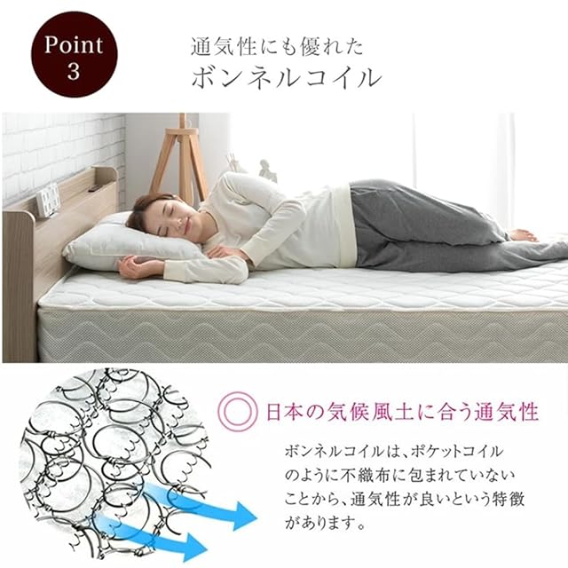 【スタッフのおすすめポイント!】 ・身体を面で支え、硬めの寝心地のボンネルコイルマットレス・厚みたっぷりでクッション性も抜群!・ISO9001認定工場で生産した安心の品質・圧縮梱包で搬入ラクラク!
