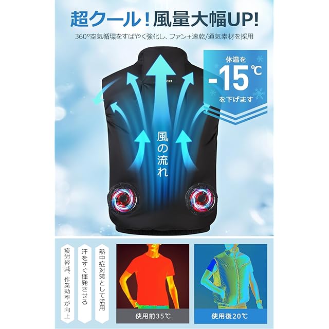 【男女兼用&洗濯機で洗える】服は洗濯機でお洗濯が可能です。洗濯前に、バッテリー、扇風機、電源ケーブルを取り外してください。パッケージ内容:空調作業服*1、ファン*2、バッテリー*1、バッテリーケーブル*1、ファン接続ケーブル*1、日本語取扱説明書*1。※ご注意:表記サイズには若干の誤差が生じる場合があります。お使いのモニターの発色具合によって、実際のものと色が異なる場合もございます。予めご了承くださいませ。
