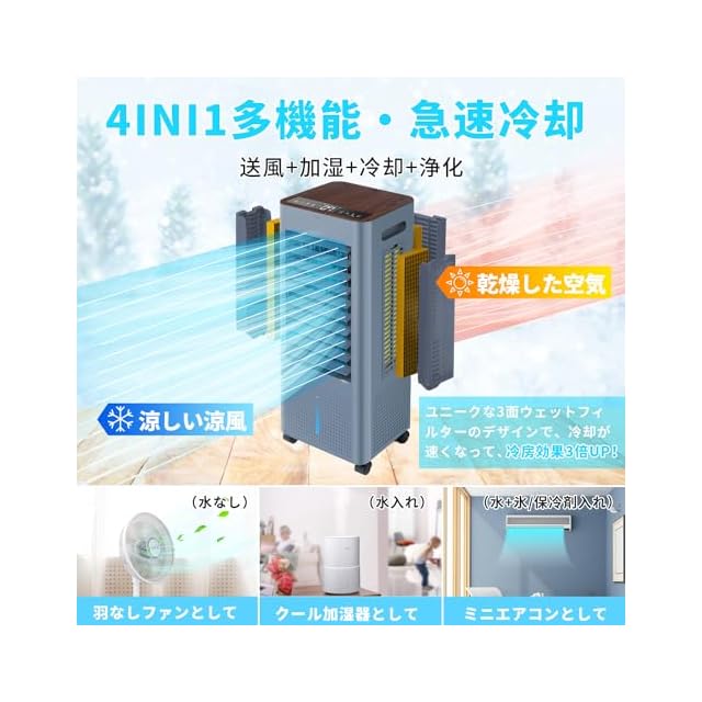 【2025最新進化】冷風機 冷風扇 冷風扇風機【3方向で吸水し冷感アップ】スポットクーラー 冷房 LED液晶画面 イオン発生 8L大容量タンク 3つモード 3段階風量切替 ルーバー機能 24H切/入タイマー 水不足提示 氷入れ リモコン遠隔操作 キャスター搭載 扇風機 スポットクーラー 熱中症対策 冷風機 強力 人気 Water retaining Crystal 日本語説明書