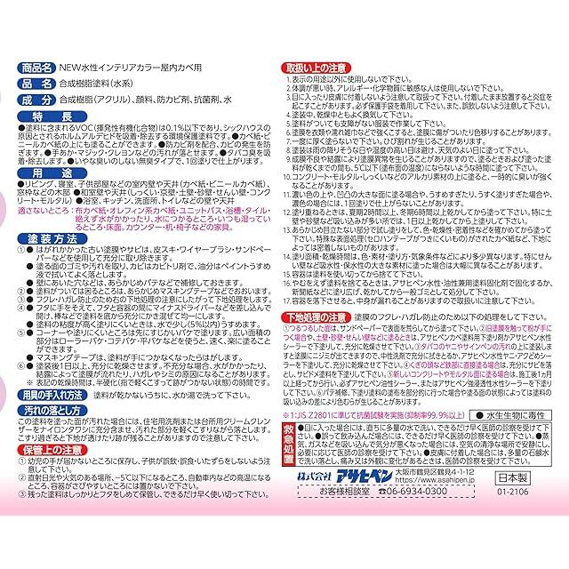 アサヒペン 塗料 ペンキ NEW水性インテリアカラー屋内カベ 1.6L 白 水性 室内 壁用 艶消し 1回塗り 無臭 防カビ 低VOC シックハウス対策品 日本製