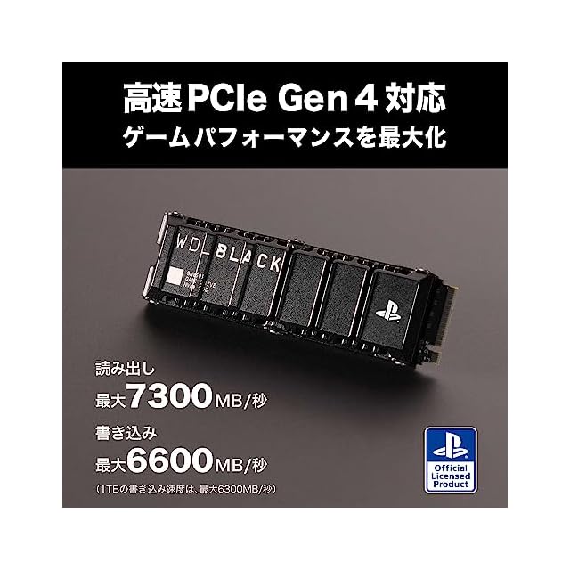 PlayStation 5コンソール[1]用の公式ライセンスM.2 SSD。 取り付け簡単だから安心して遊べます。 [1]PlayStation 5ファームウェアの互換性については、WD_BLACK 製品ページをご覧ください。