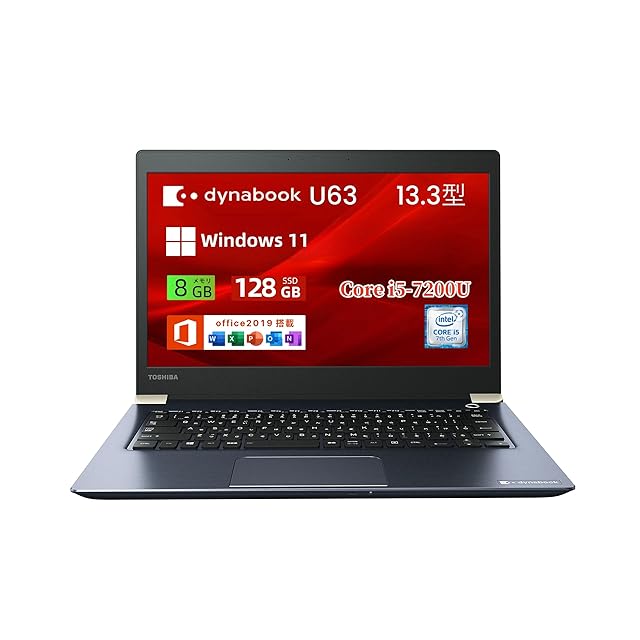 【整備済み品】 東芝 軽量 ノートパソコン dynabook U63 13.3型FHD(1920×1080) Core [email protected]/メモリ8GB/SSD 128GB/WIFI/Bluetooth/HDMI/type C/Win 11 & MS Office 2019搭載 ノートPC (メモリ 8GB/SSD 128GB)