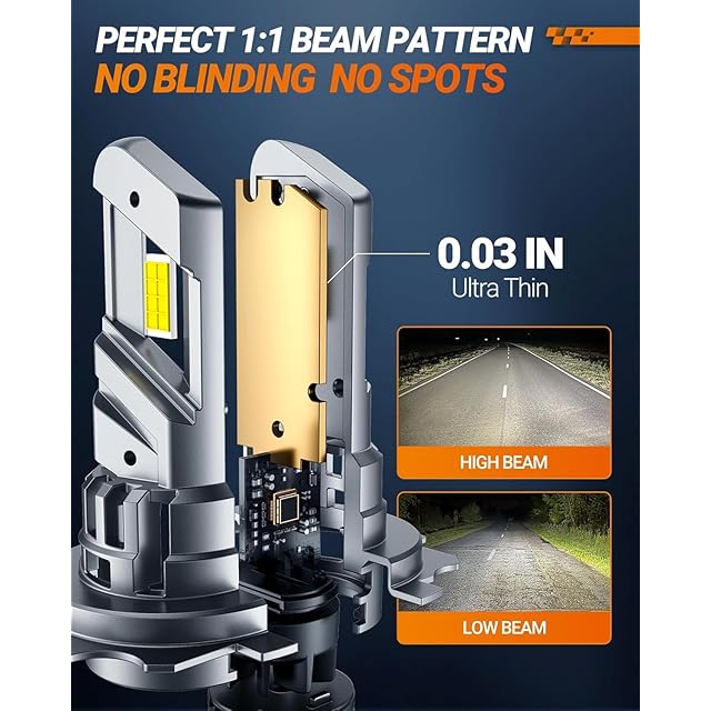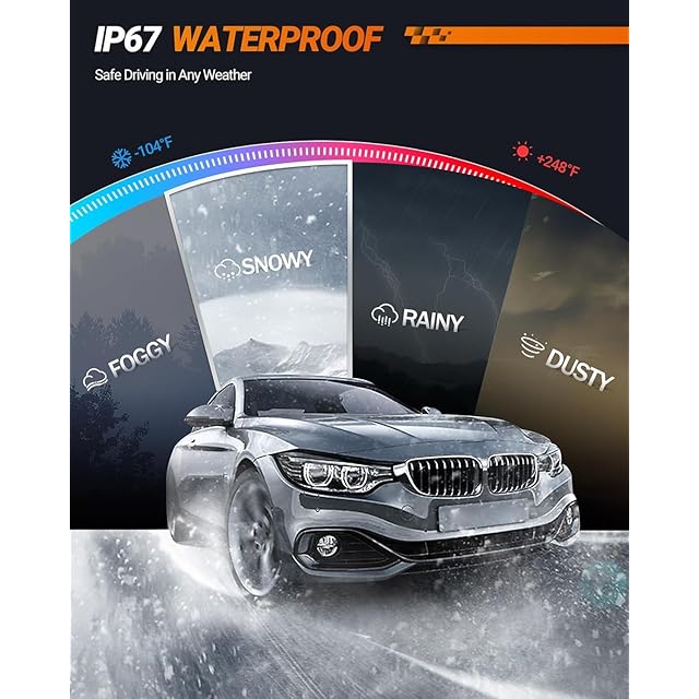 ⑥【最先端の7535 CSP LEDチップ】 - 最大98%の光効率向上を実現しています。6500Kの色温度により、クリアで自然な光を放ち、視認性を大幅に向上させます。このプレミアムな色温度は、道路上でのコントラストとクリアさを強化し、夜間運転時の目の疲れを軽減します。耐久性を考慮した設計により、長期間安定した性能を提供し、メンテナンスや交換コストを最小限に抑えます。