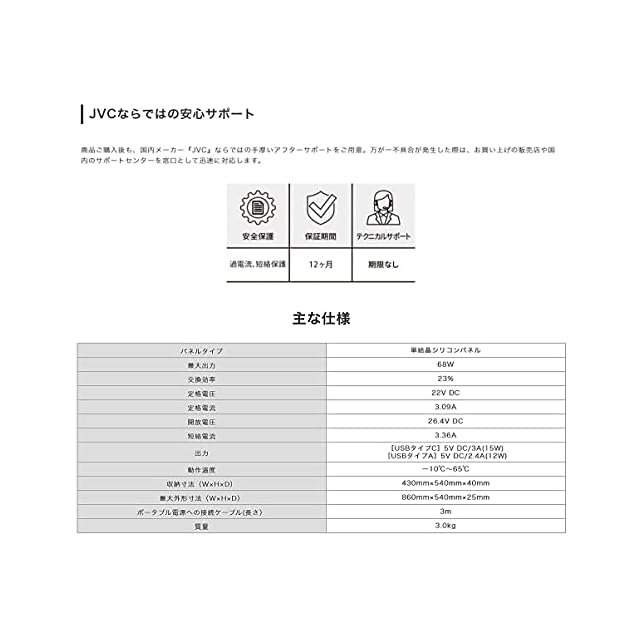JVCケンウッド BH-SP68-C ポータブルソーラーパネル