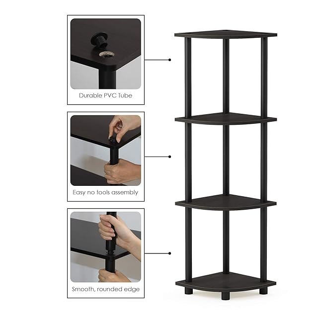 フリノ(Furinno) 4段コーナーシェルフ・コーナーラック Turn-N-Tube 高さ110.5×幅29.5×奥行29.5cm カラー:エスプレッソ/ブラック 【日本正規輸入品】 12078EX/BK