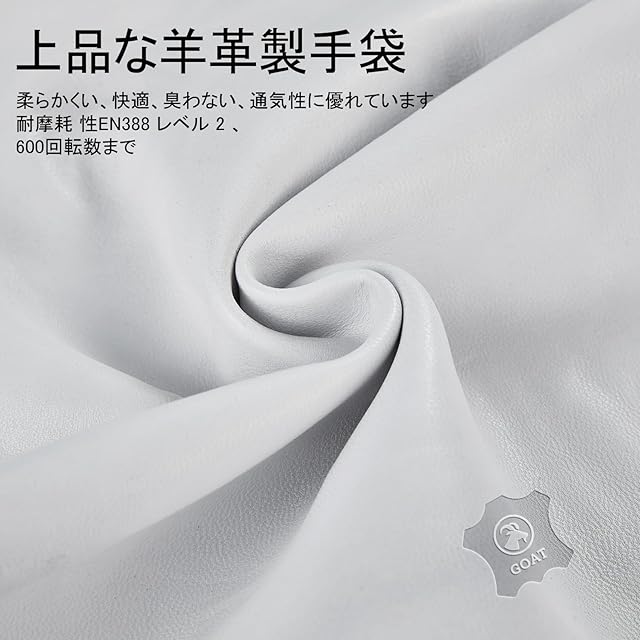 【手の掌側&甲側&袖口】伸縮性のある。伸縮性のあるスパンデックス素材にも優れた柔軟性と通気性を提供し、フィット感抜群です。耐久性を高めるために、羊革のストライプを採用します。同時に指が動く時のフレキシビリティも向上します。袖口は手首にぴったりとフィットすることで、手袋の内側に汚れや破片が入らないようにします。バンド付きの伸縮性のある袖口が何時でも調節できます。