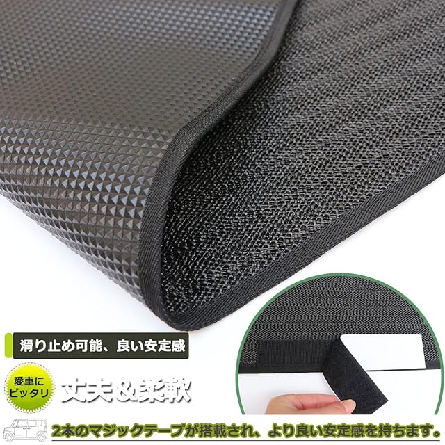 【滑り止め可能】裏面に滑り止め加工を施し、特にラゲッジマットの上にお荷物が搭載された場合、お荷物がズルズル滑り落ちる心配はありません。ぴったり愛車に合わせますように、取付の時、後部座席及びシートベルトを収納した次第、マットを敷きます。