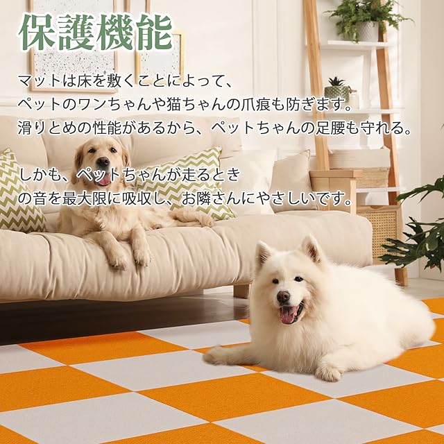 ジョイントマット BOBO タイルカーペット タイルマット 床保護 チェアマット ズレにくいマット 洗える カット可能 吸着カーペット ペット猫犬用 掃除ラクラク 防音 床暖房対応 色:オレンジ*アイボリー【30*30CM*12枚入り】