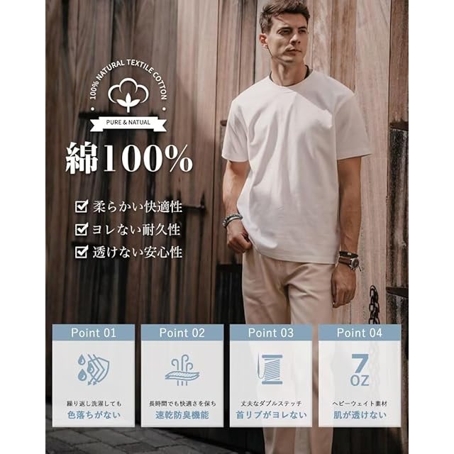 [高品質な7オンス生地]このTシャツは、耐久性と着心地を兼ね備えた7オンスの肉厚生地を使用しています。毎日の着用にも耐えうる丈夫さがあり、長持ちします。洗濯後の縮みも最小限に抑えられており、いつまでも快適な着心地を保ちます。