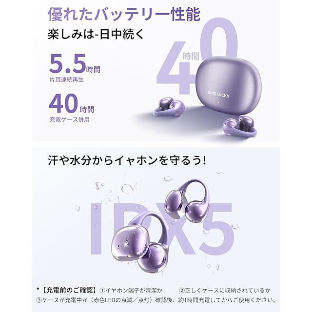「2024年超快適 音質強化モデル イヤーカフ」イヤホン bluetooth5.4 ワイヤレスイヤホン Hi-Fi音質 音漏れ抑制 オープンイヤー型 耳を塞がない 軽量約5.6g ENC通話ノイズキャンセリング ながら聴き 耳挟み式 骨伝導の革新 人間工学設計 IPX5防水 マイク付き iOS/Android対応 通勤/通学/スポーツ/ゲーム (パープル)