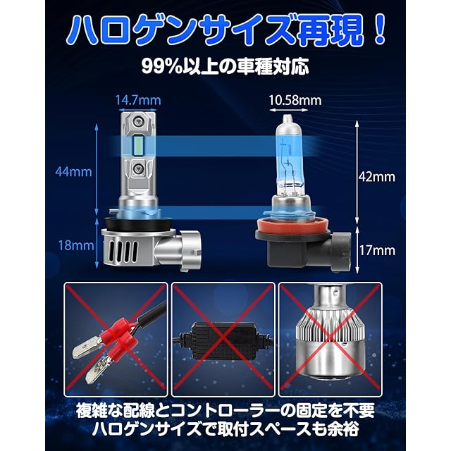 『ポン付け&取付簡単』ユニットとエンジンの間が狭くて、手を伸ばせない、取付は専門店の高料金をかからないといけません?スパリーH11 LED ヘッドライトは純正ハロゲンサイズにほぼ1:1なので、元はハロゲンバルブの車は女性でも本社H8 LED フォグを簡単に取付できます。※パッケージ仕様について、本製品はヘッドライトやフォグとし使用可能ですので、フォグランプのパッケージで届けた場合があります。