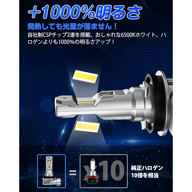 『車検対応』本社のH11 LED ヘッドライトは業界の中でハロゲンバルブサイズ最も近いで、ハロゲンとほぼ同じ配光を実現して、シェードを正確に配置することにより、カットラインもしっかりでてるので、新車検基準を満たしています。グレア光を純正ランプと同等レベルに抑えて、対向車等周りにも迷惑な眩しさが無く、夜間の走行が非常に楽になり、安全に運転しています!日本で車検も試しました、H8 LED フォグ を装着した時のcd(カンデラ)では、平均46,000cdをマークします!ハロゲンバルブの10倍以上の明るさになります、またハイビームでは、ほとんどの車両で驚きの65,000カンデラ以上となります、前代ハイパワーモデルとほぼ同じレベルに出来ました。その数値はHIDよりも明るく輝くことになります、ほぼハロゲンバルブの10倍以上の明るさ、元の車検基準の7倍でした。※ご注意:車検に関しては、地域により検査員の基準が異なる場合がございます。