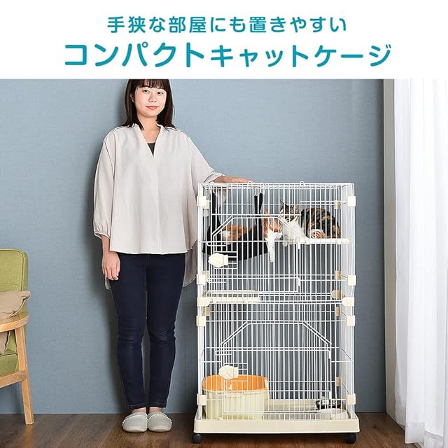 タンスのゲン 猫ケージ 2段 幅69×奥行48×高さ106cm コンパクト ハンモック キャスター付き キャットケージ 天井扉 52800007(87054)