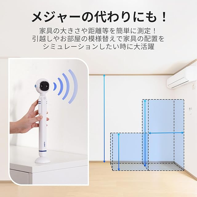 【正しく測定するには】・本製品は精密測定が行える商品ではありません。超音波を利用する特徴上、測定する際の周囲環境や角度のわずかな変化にも影響を受けやすい傾向があります。/・半径80cmの範囲に障害物がない空間で測定してください。/・床面が平らな場所で測定してください。/・測定はフローリング等の固い場所で行ってください。絨毯などの柔らかい場所で測定すると、誤差が生じる可能性があります。