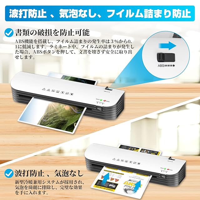ラミネーター 本体 a3【改良版 A3/A4対応】ラミネート機 軽量 静か 波打ち防止 気泡なし ラミネートフィルム 12枚付き 裁断機 角取り付属 コンパクト ABS機能 2分間ウォームアップ 冷/熱モード付き 2時間連続作業可能 写真/名刺/カード/メニュー対応 オフィス用品 業務用 家庭用 【日本語お取扱書】母の日プレゼント