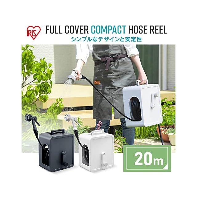 アイリスオーヤマ(IRIS OHYAMA) ホースリール 20m フルカバー仕様 蛇口ジョイント付 水形切替機能付 持ち運びしやすい持ち手付き FCH-20M ホワイト