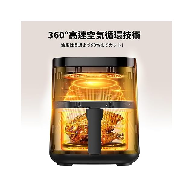 【ご家族の健康食生活をサポート】このノンフライヤーは360°高速空気循環技術を搭載し、NTCインテリジェントな温度制御技術を装備しており、食材の脂肪を利用して食材を均一に加熱できだけでなく、通常のエアフライヤーと比較してカロリーを最大92%削減できます。家族に健康的な食生活を作りたい方にぴったりの調理家電です。