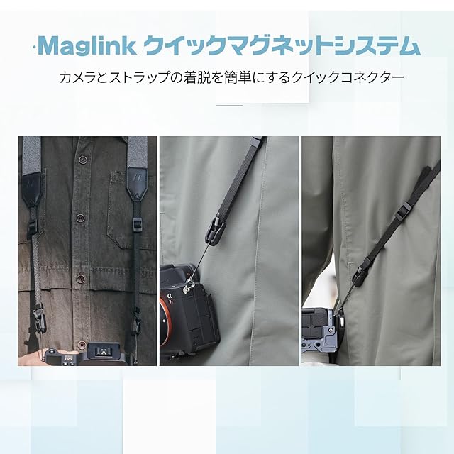 【カメラの利便性UP!】マグリンクとはカメラのストラップを簡単に取り外しできるようにするためのアダプターです。強力な内蔵マグネットは安定感があり使いやすいです。クイックバックルは、ストラップを収納することなく、カメラを取り外すことができます。何か撮りたい瞬間はすぐにカメラを構え、撮影しないときは両手をフリーことができます。三脚使用したい時、複数のカメラを持っていて素早く切り替えたい時、カメラ収納時など、ストラップを何度も着脱する必要がなくとても気持ちよく撮影することができました。