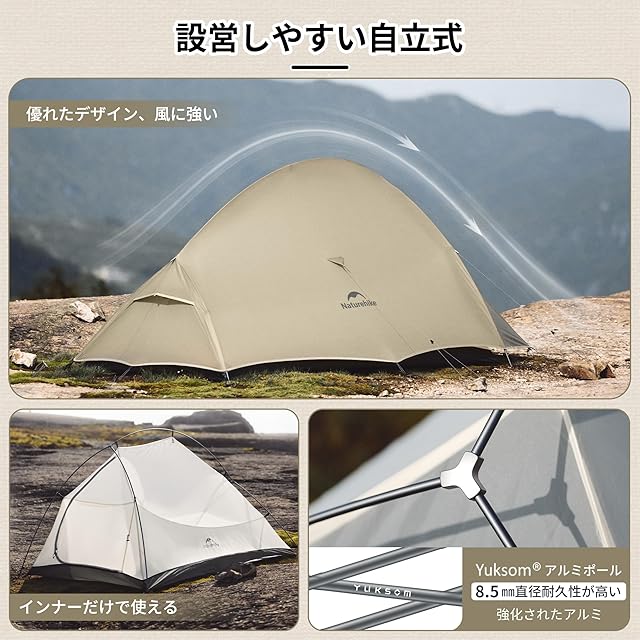 Naturehike公式ショップ テント 2人用 軽量 ソロキャンプ 登山 自立式 前室付きダブルウォール アウトドア 専用グランドシート付き 耐水圧4000㎜ 防風 収納袋付き コンパクト 3シーズン 防災用 キャンピング Clould up2 Pro/UL
