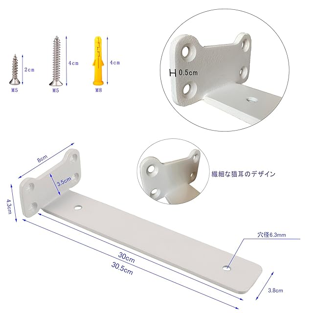 SYWXJ 隠し棚受け 4個セット30cm 頑丈 棚受け 最大荷重90KG アイアンブラケット 5mm厚目立たない棚受け金具 棚 白壁掛け 金具 l字金具 棚受け金具 隠し ビス付 ホワイト