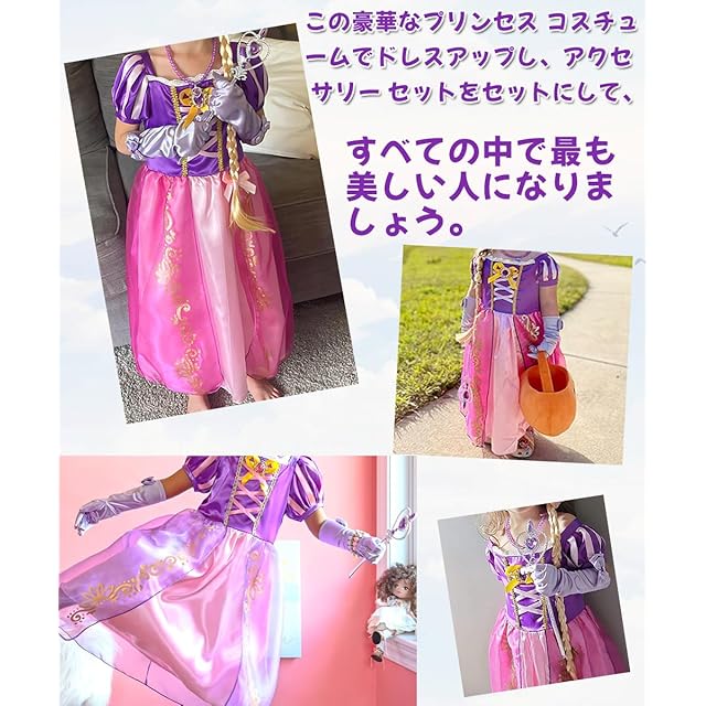 [AOTYP] プリンセス ドレス 子供 コスプレ 豪華7点セット お姫様 ドレス 女の子 ワンピース 姫風 キッズコスチューム ラプンツェル風 ドレス ディズニー風プリンセス ドレス ステージ衣装 クリスマス プレゼント cosplay イベント 仮装 誕生日 パープル110