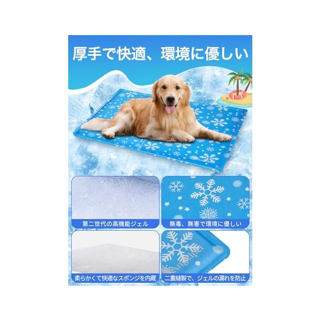 【超高性能ジェル採用と快適なクッション性】高品質で無害で安全な高性能ジェルを採用することで、冷却効果が持続し、ペットが長時間涼しく快適に過ごせるようになっています。また、新しくアップグレードされた製造工程により、スポンジが充填されており、市場の同種製品よりも厚くて平らです。ペットがより快適に利用できます。