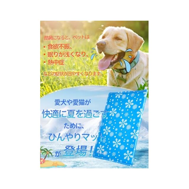 【優れた冷却効果】マット内のジェルがペットの体温を吸収・放散し、冷感を長時間維持します。ペットの体感温度を約9℃下げ、適度な冷たさを保ちながらペットの健康を守ります。猛暑の中でもペットの熱中症対策に役立ちます。全身を毛で覆われたペットにとって、ひんやりマットは夏の必需品です。